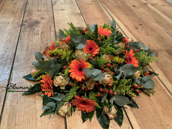 U kunt de kleur zelf bepalen. Gelieve een dag of 2 van te voren bestellen ivm het inkopen van de bloemen. Vandaag nog laten bezorgen? Voor 12:00 besteld is dezelfde dag bezorgd. Het bloemstuk kan dan afwijken van de foto. De bloemstukken worden gemaakt van de bloemen die we op dat moment op voorraad hebben. Het kan dus voorkomen dat er andere soorten bloemen in worden verwerkt dan dat op de foto staat. Voor vragen of aanpassingen neem gerust contact met ons op +31591346229
