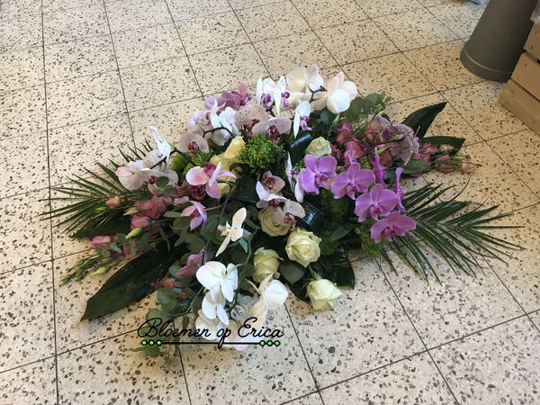 U kunt de kleur zelf bepalen. Gelieve een dag of 2 van te voren bestellen ivm het inkopen van de bloemen. Vandaag nog laten bezorgen? Voor 12:00 besteld is dezelfde dag bezorgd. Het bloemstuk kan dan afwijken van de foto. De bloemstukken worden gemaakt van de bloemen die we op dat moment op voorraad hebben. Het kan dus voorkomen dat er andere soorten bloemen in worden verwerkt dan dat op de foto staat. Voor vragen of aanpassingen neem gerust contact met ons op +31591346229